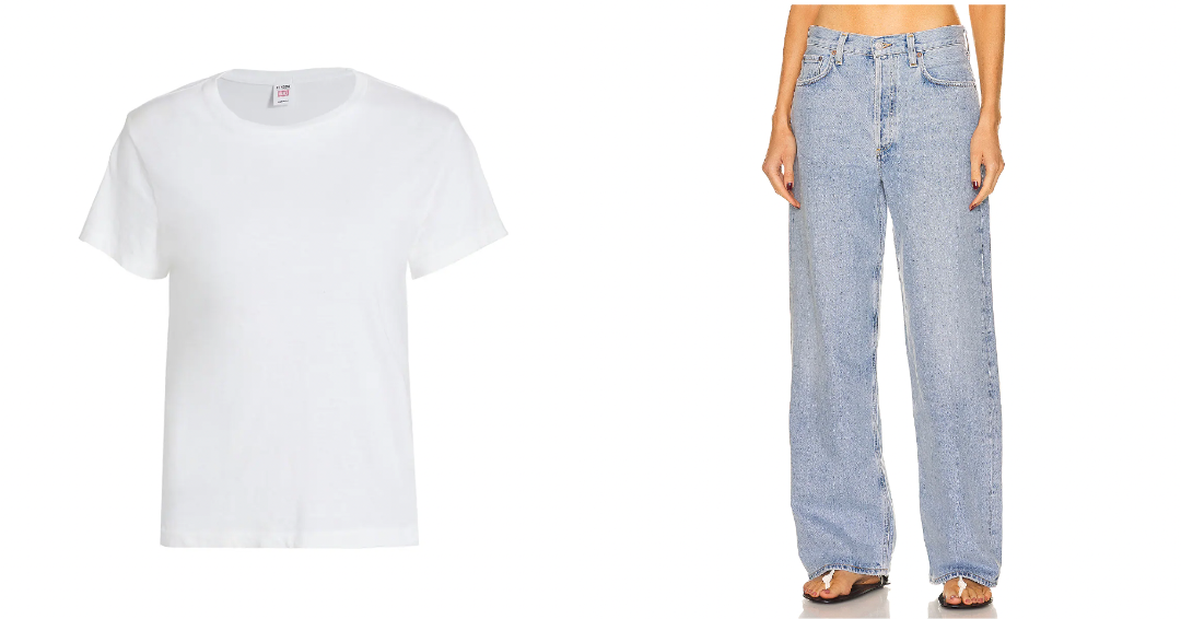 Favorite white tee is the Redone x Hanes classic tee and favorite jeans are Agolde low rise baggy. (These come in so many good colors like this black + white!)