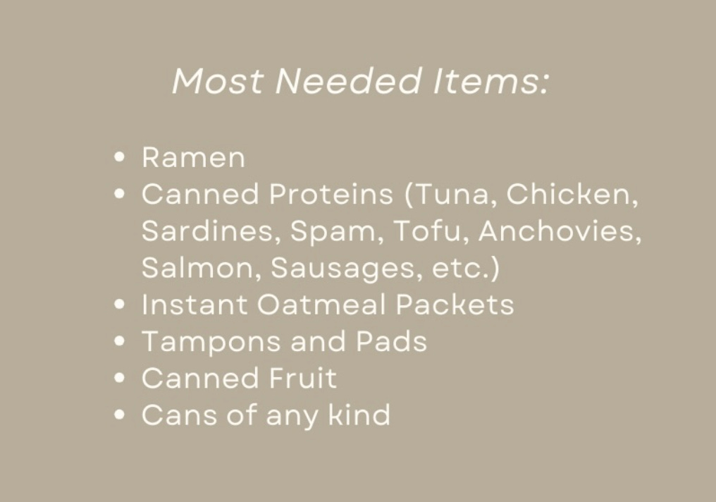 If you’re local to Minneapolis, I know Parc Shop is taking donations of the below items through Thursday.