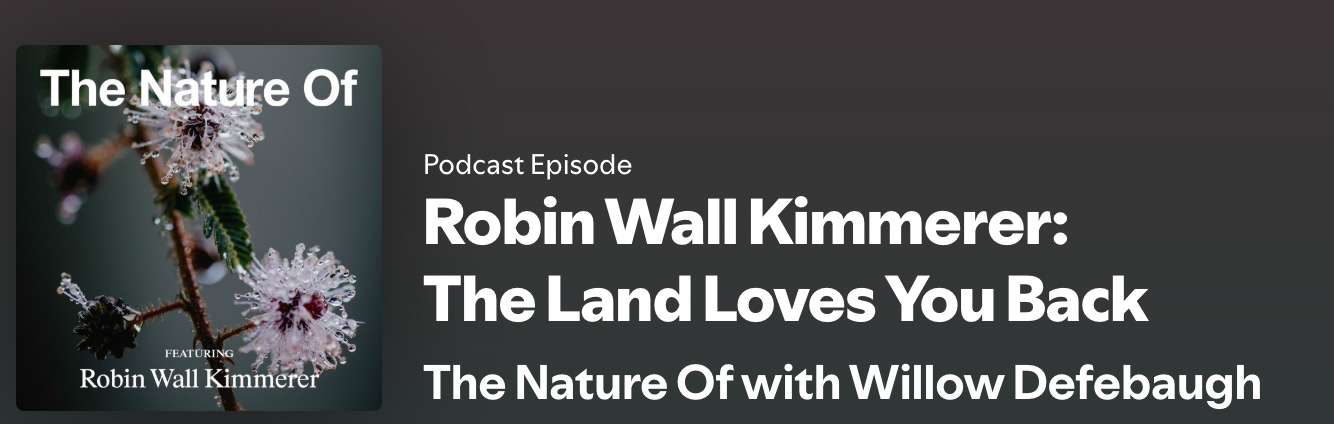 Speaking of podcasts, listening to anything with Robin Wall Kimmerer (author of Braiding Sweetgrass) grounds me. I recently listened to this one on The Nature Of, with host and editor-in-chief of Atmos, Willow Defebaugh.