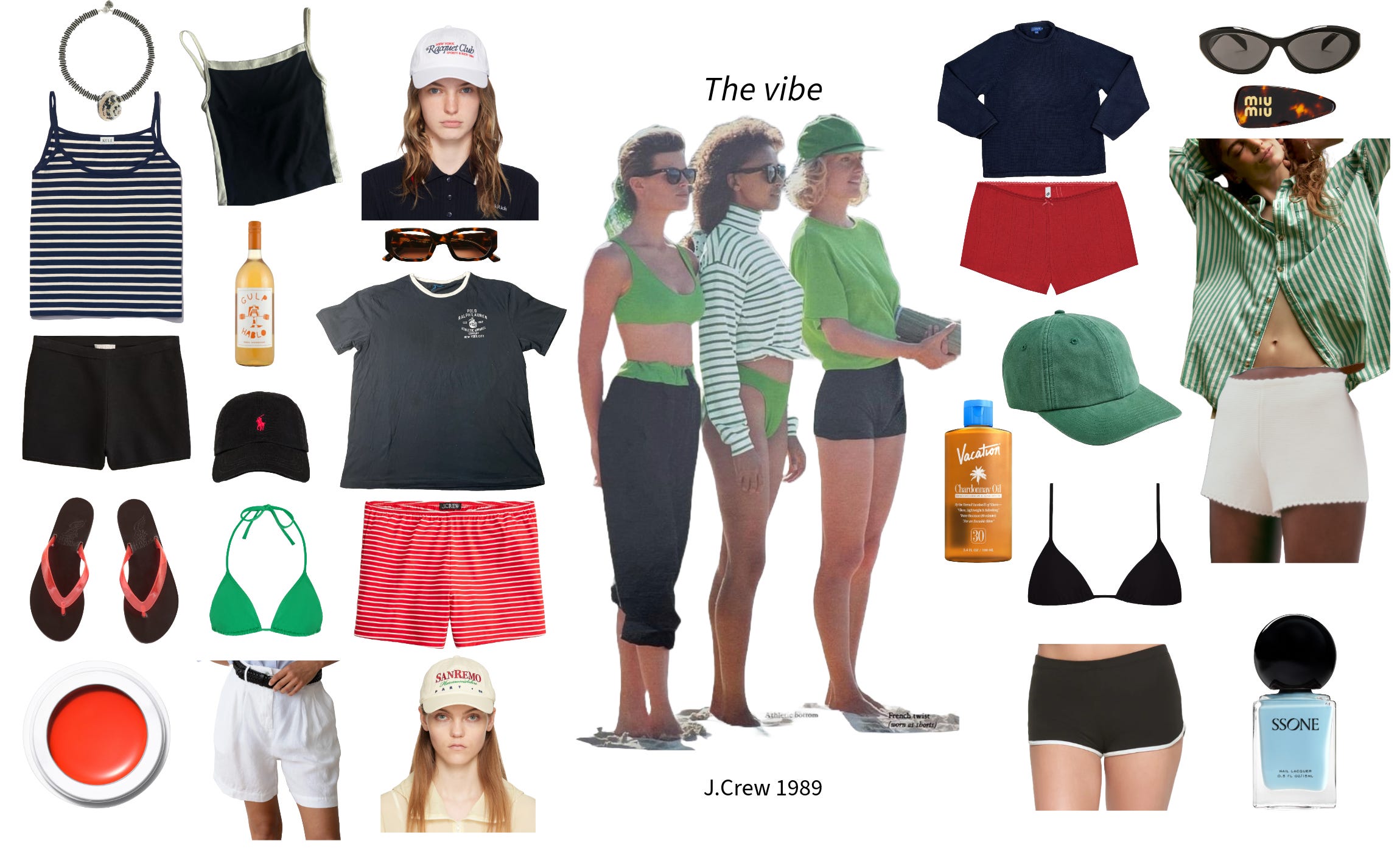 Vintage J.Crew catalogues are a great source of inspiration for Summer. Especially vibing with the middle photo. Put me on a lake on the east coast with a bottle of Gulp Hablo orange wine, a beach chair and a book, maybe a beach bonfire?? I love micro shorts with a big cozy sweater, the vintage J.Crew roll necks are perfect. Summer camp vibes. Linked everything here.